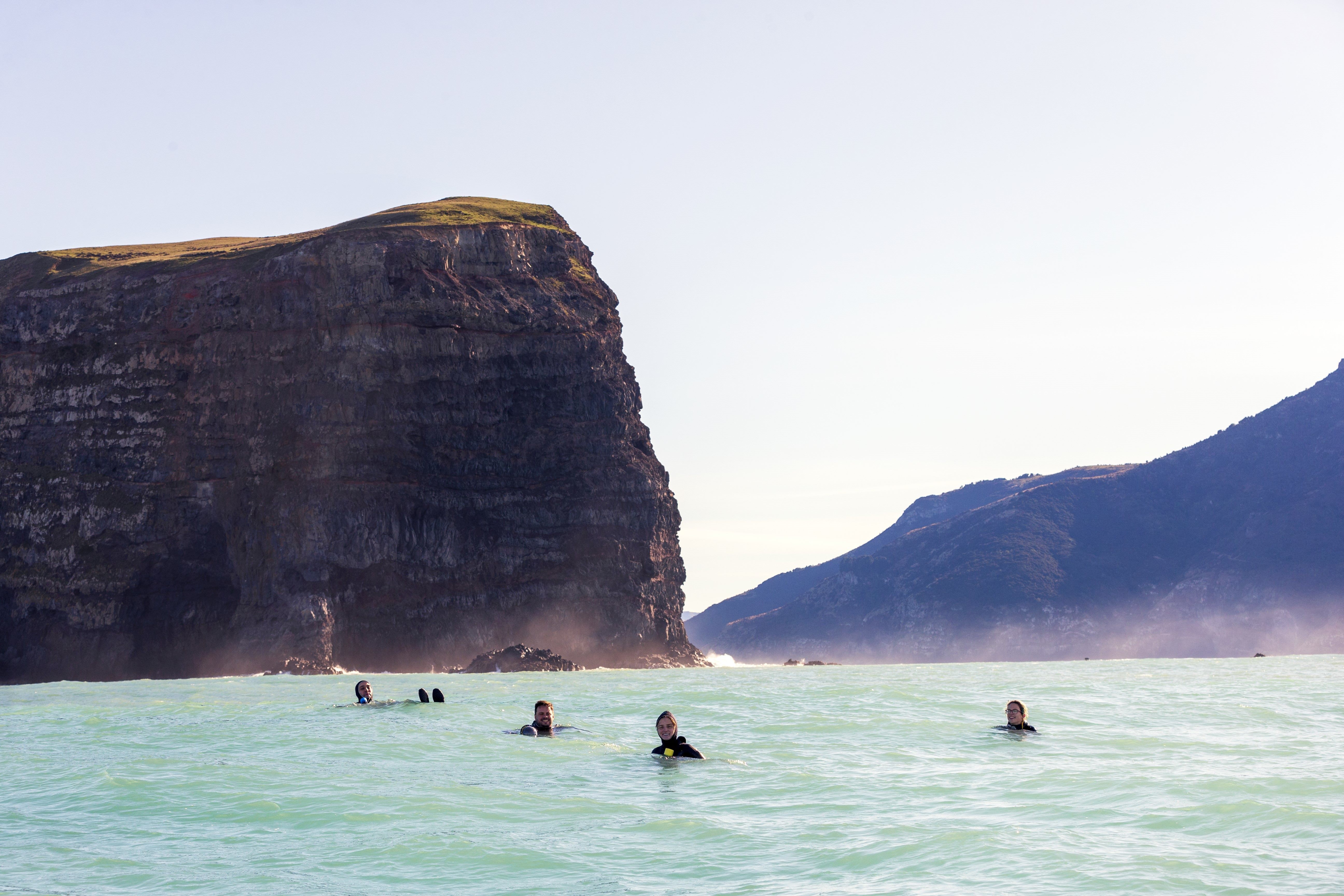 In Akaroa, you’ll journey over the scenic Banks Peninsula before arriving in this charming French-inspired harbour town. After exploring its local shops and seaside cafes, it’s time to head out on the water for a guided dolphin swim. In Kaikōura, with the stunning Seaward Kaikōura Range as your backdrop, the experience combines marine adventure with breathtaking alpine views. Both locations offer tours tailored to different comfort levels, from full swims to relaxed viewing options.