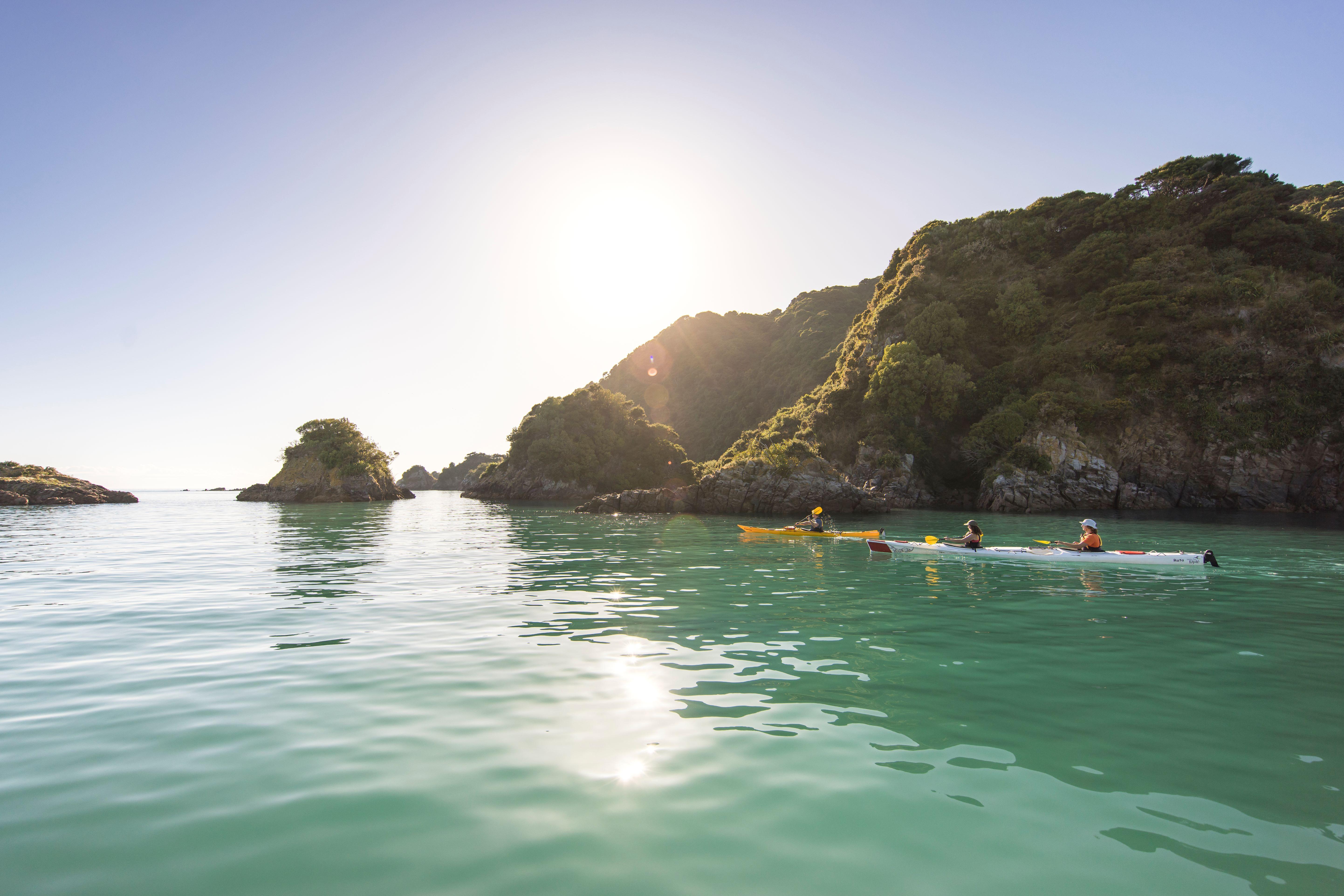 New Zealand South Island kayak tours open the door to an extraordinary range of paddling adventures. In the north, Marlborough Sounds provides calm, sheltered waters ideal for spotting dolphins and exploring quiet coves. A paddle down the Pelorus River takes you through lush native forest and scenic gorges, with crystal-clear water that featured in The Hobbit films. These peaceful spots are perfect for beginners and anyone keen on wildlife watching.