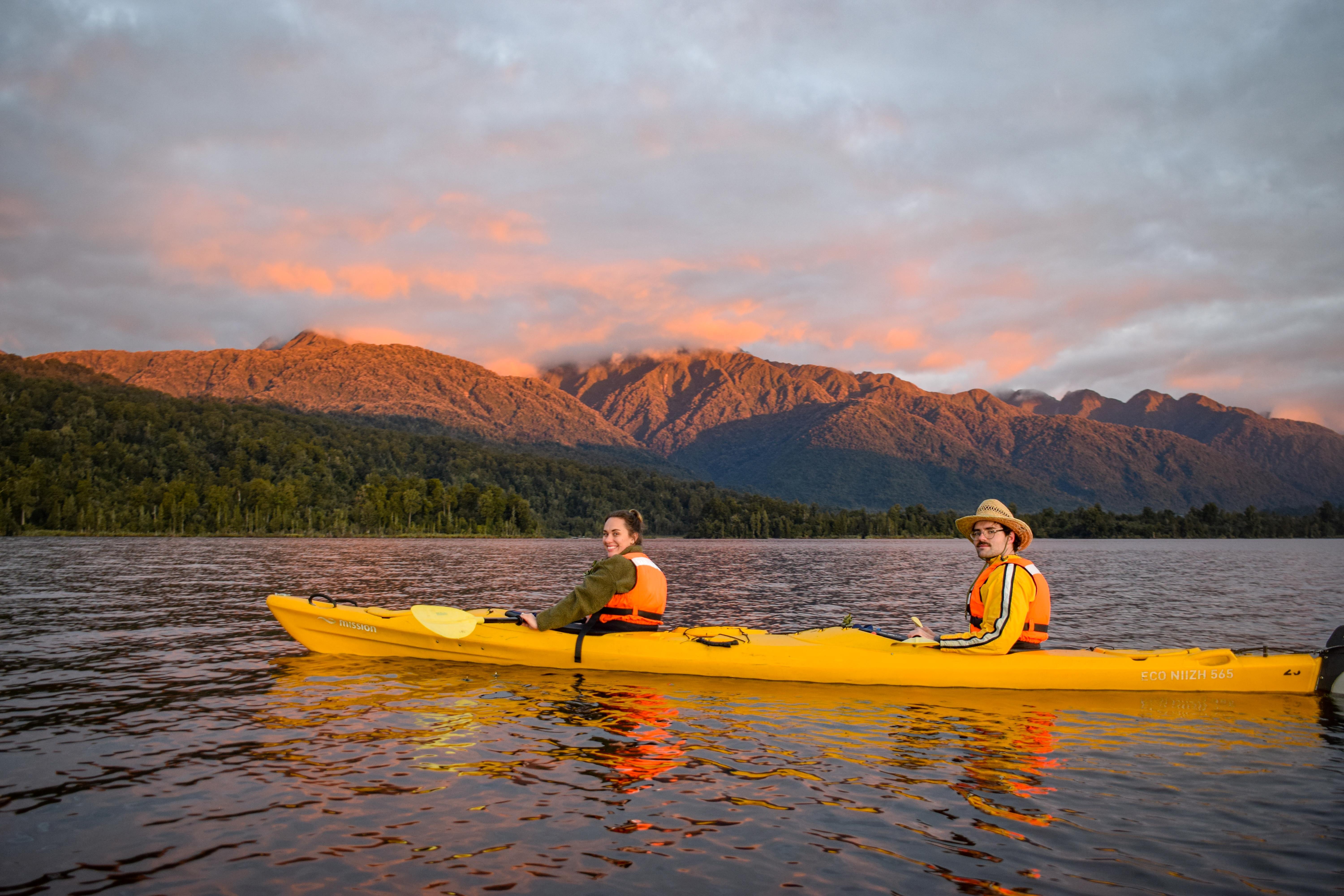 For something more remote, head to the West Coast for kayaking tours on Lake Mapourika and the Ōkārito Lagoon. Here, you’ll paddle past ancient rainforest, mirrored waters, and distant snow-capped peaks, all while spotting rare species like the kōtuku (white heron). Whether it’s a peaceful evening paddle or a full-day expedition, kayaking is one of the most immersive ways to experience the South Island’s wild and varied beauty.