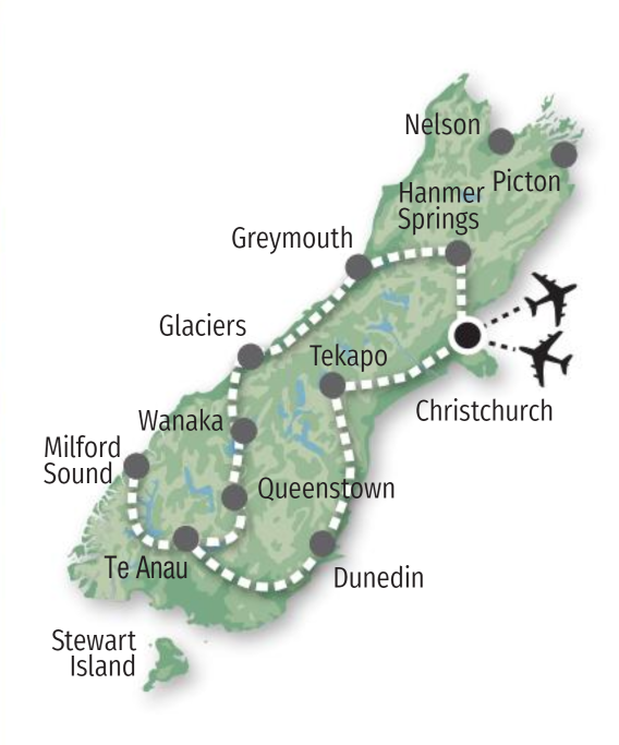 From Queenstown, drive to Te Anau and cruise the magical Milford Sound before heading to Dunedin’s heritage streets and the Otago Peninsula’s penguin colonies. Wrap up your trip with stargazing at Lake Tekapo, part of the world’s largest Dark Sky Reserve, and visit the Antarctic Centre in Christchurch before dropping off your camper. It’s the ultimate South Island escape for travellers who love freedom, scenery and unforgettable experiences.