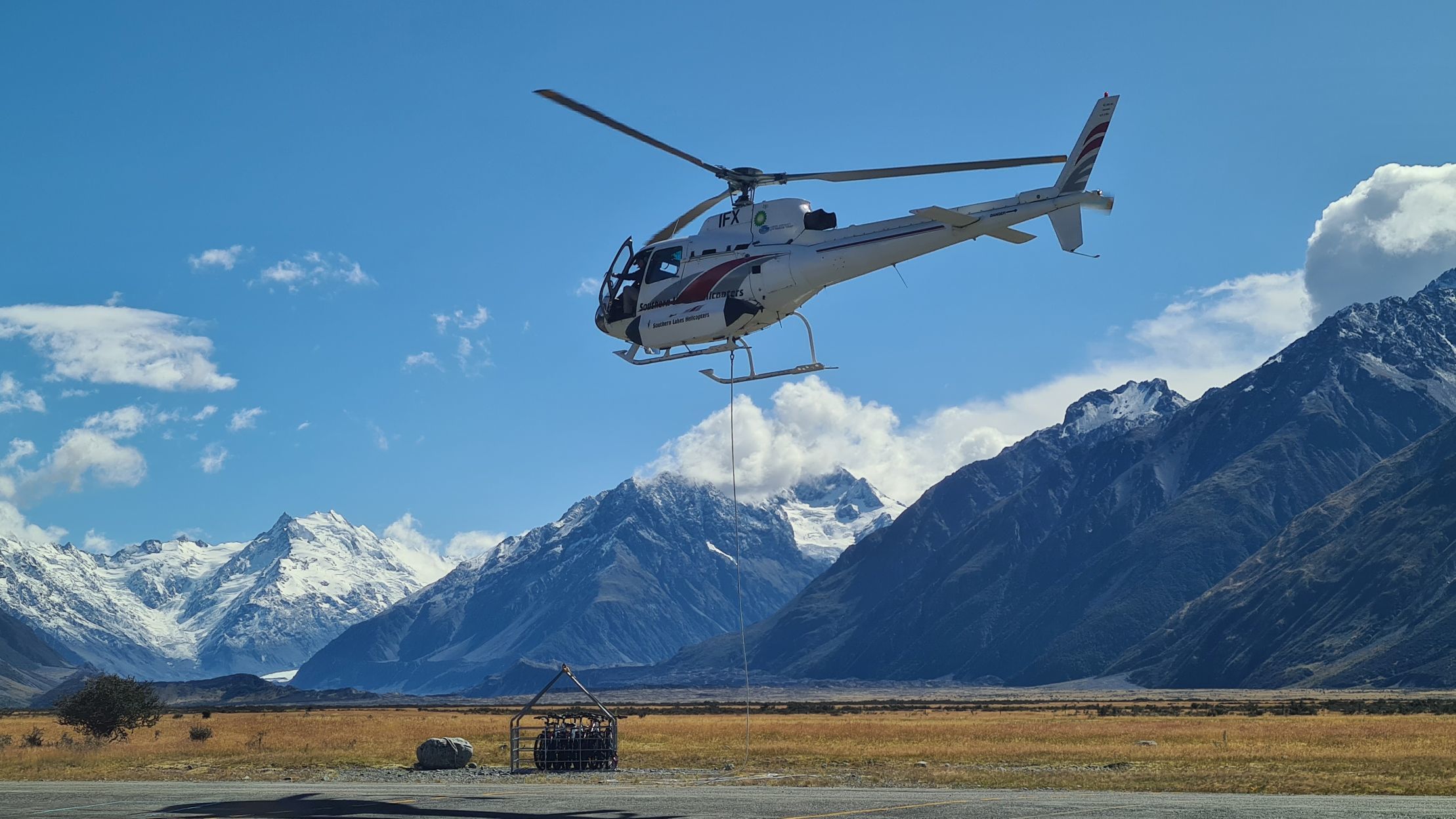 - Heli-flight across the Tasman River with bikes to the official start point