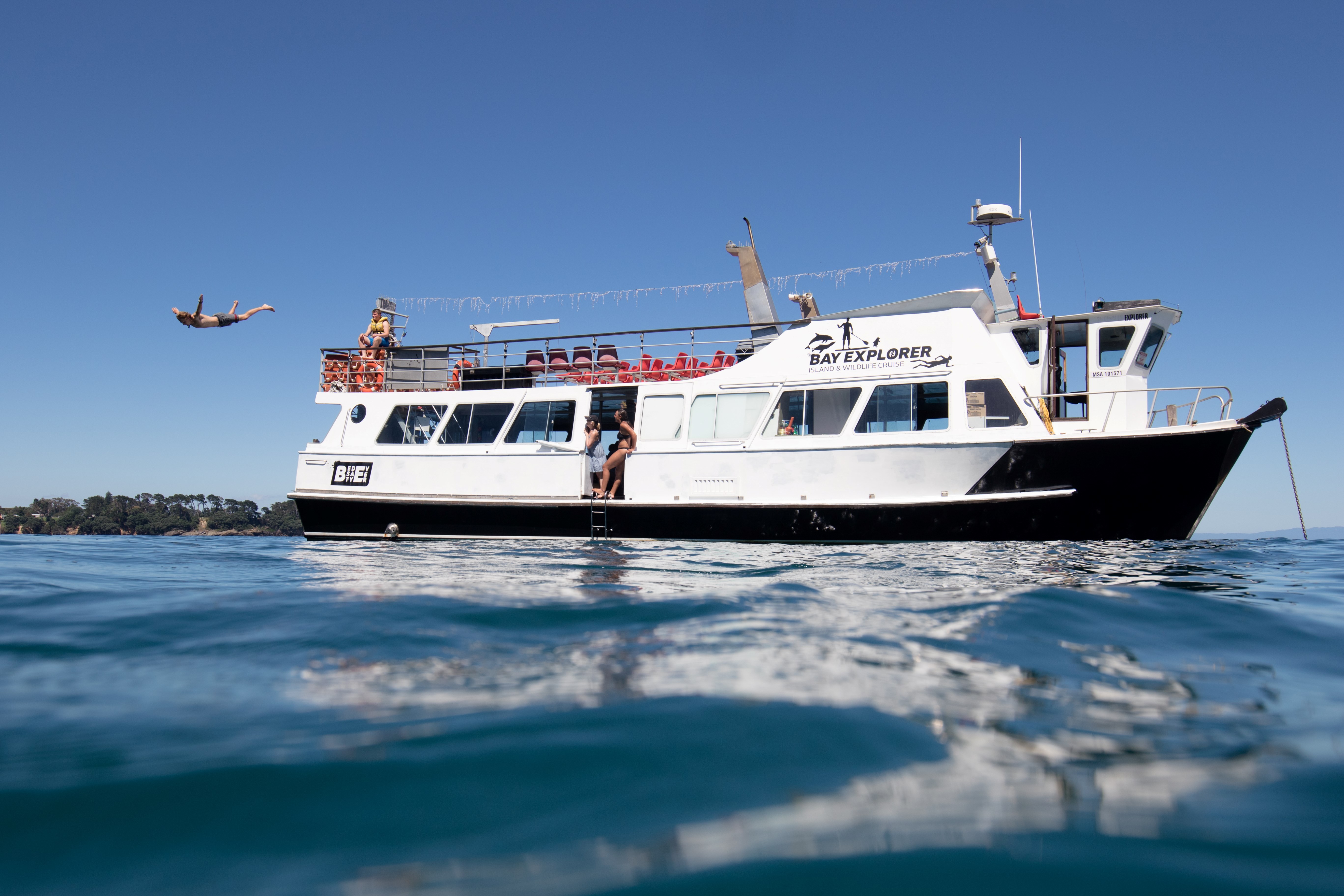 - Join us for a 4 to 5-hour dolphin and wildlife watching cruise on our spacious 18-metre boat, offering 360-degree outdoor views.