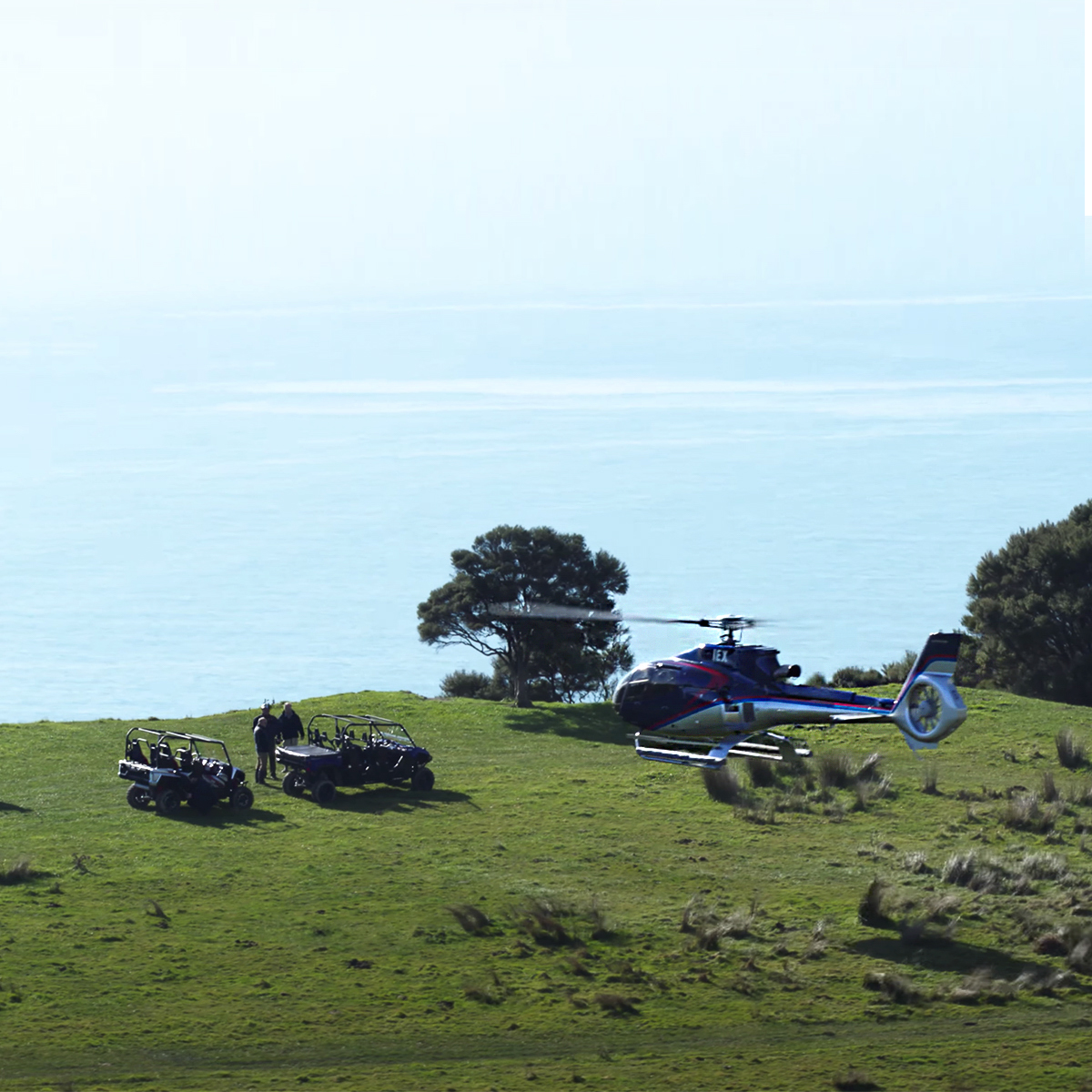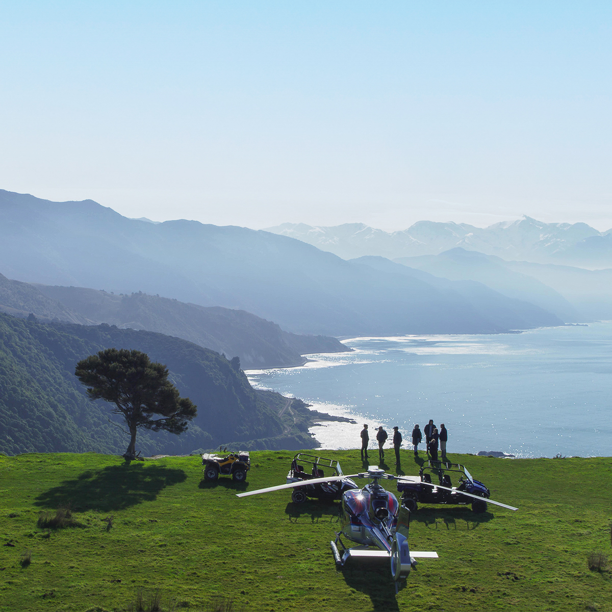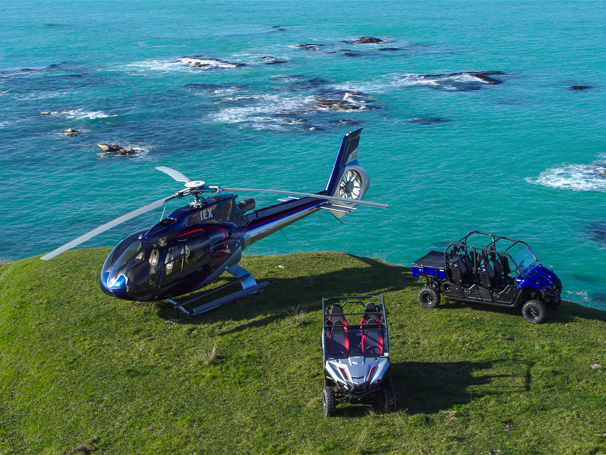 Your journey begins on the beachfront helipad, where Kaikōura Helicopters lift you high above the rugged coastline and stunning peninsula. After soaking in the aerial views, you’ll touch down at an exclusive hilltop landing spot that sets the stage for adventure. Waiting for you is a powerful ATV, ready to take you off-road across private farmland.