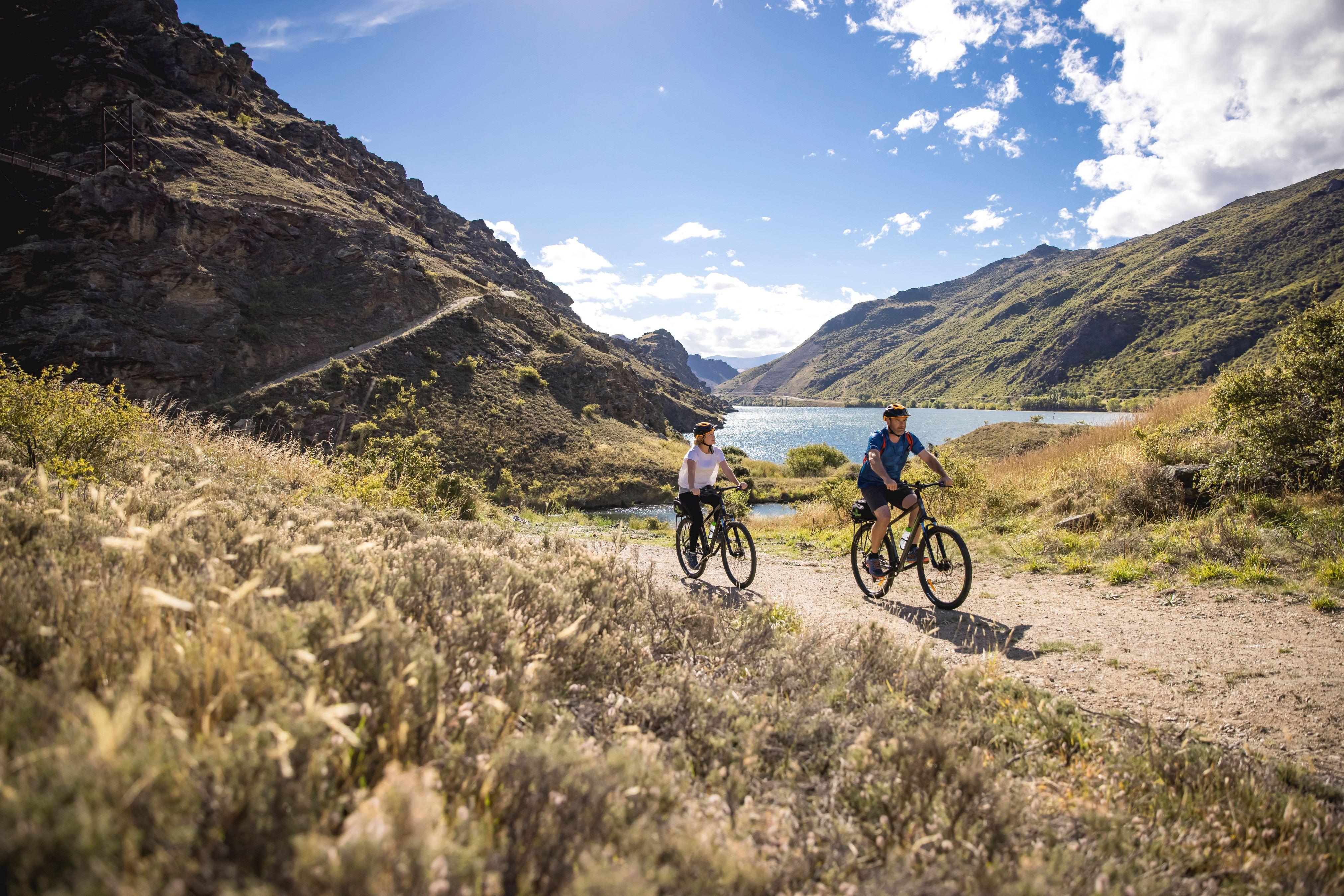Located in the heart of Central Otago, the Lake Dunstan Trail captures the essence of this region’s dramatic beauty. Riders cross the iconic Hugo Suspension Bridge, cycle alongside turquoise waters, and weave past rocky outcrops shaped by nature and history. This trail offers more than just a ride – it’s a journey through the spirit of Otago.