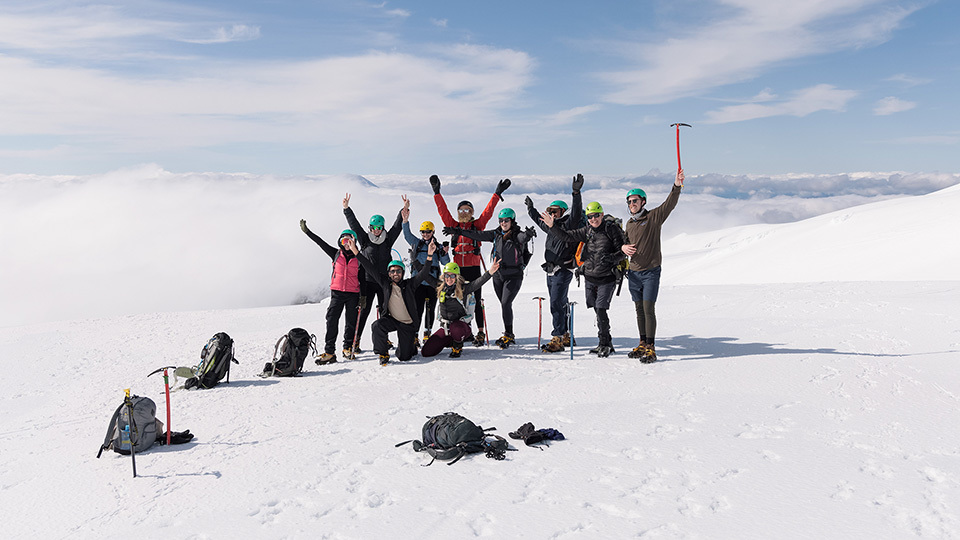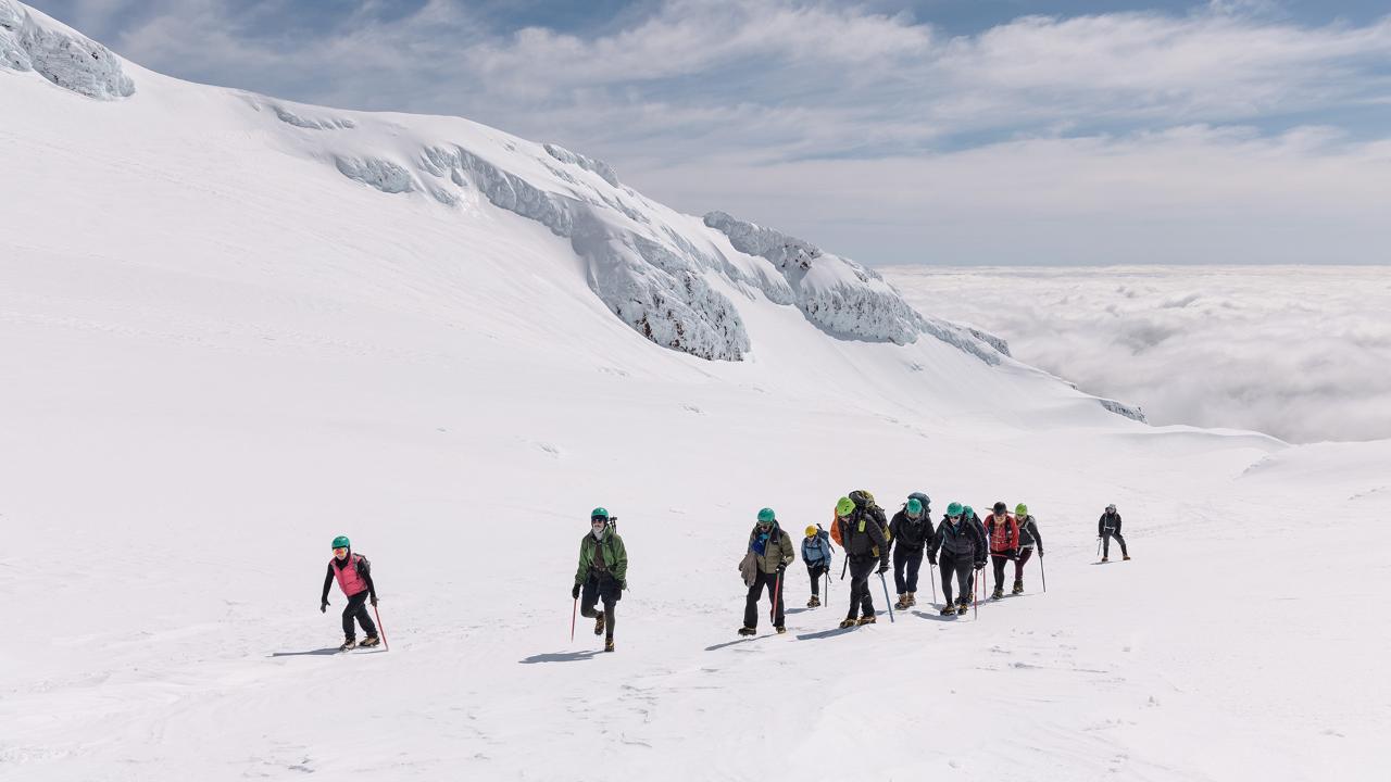 During winter and times of snow, surface conditions will vary from day to day. Crampons and ice axes are required, and your guide will provide instruction on how to use them correctly. No alpine experience is required.