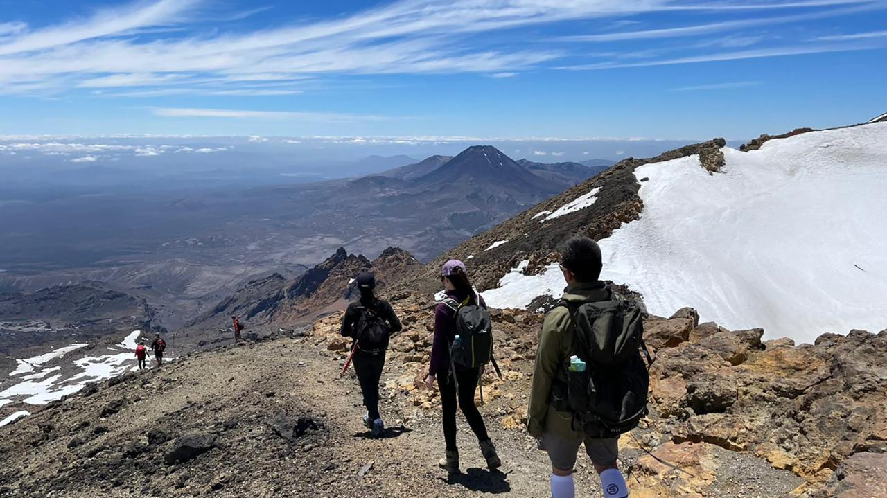 Walking distance is 10 kms return or 7 kms return when the chairlift is utilised. Walking time is about 6-7 hours. This walk requires a good level of fitness. Please note this is not a track and is less stable walking than on the Tongariro Alpine Crossing. The terrain is uneven and steep in places. It is possible to take the walk as far as Knoll Ridge Cafe if you are concerned about your fitness.